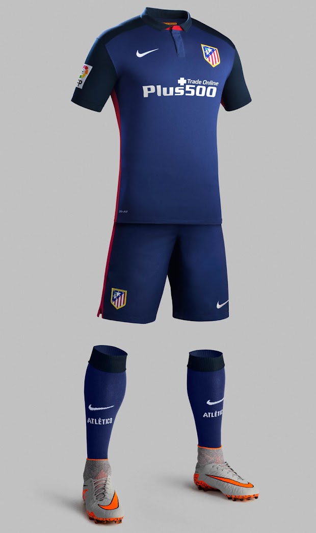 Nike hat einen klassischen Polokragen für das neue Atlético Madrid Auswärts-Trikot entworfen, der die spanische Flagge mit dem Schriftzug "1995/96 - 2015/16" aufweisen wird. In der Saison 1995-96, als Atletico Madrid das spanische Double gewann, trug Atletico ein hauptsächlich dunkelblaues Auswärtstrikot mit einem Polokragen.
