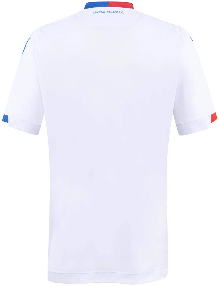 Basierend auf dem selben Template wie das Heimtrikot, weist das neue Crystal Palace 15-16 Auswärts-Trikot einen einzigartigen blau / roten Kragen und blaue Logos auf.