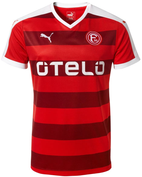 Das neue Fortuna Düsseldorf 2015-2016 Trikot kombiniert zwei Rottöne mit traditionellen weißen Applikationen, nachdem das letztjährige Trikot zum ersten Mal in der Vereinsgeschichte karierte Ärmel aufwies. Das neue Düsseldorf 15-16 Auswärtstrikot ist schwarz und das Fortuna Düsseldorf 2015-16 Ausweich-Trikot kommt mit einer noch nie zuvor gesehenen dunkelgrün / pinken Farbkombination.