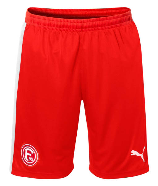 Rote Hosen und rote Stutzen komplettieren den traditionellen Look des neuen Fortuna Düsseldorf 15-16 Trikots.