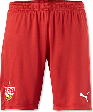 Simple rote Hosen und Stutzen komplettieren das Design des neuen Stuttgart 15-16 Trikots.