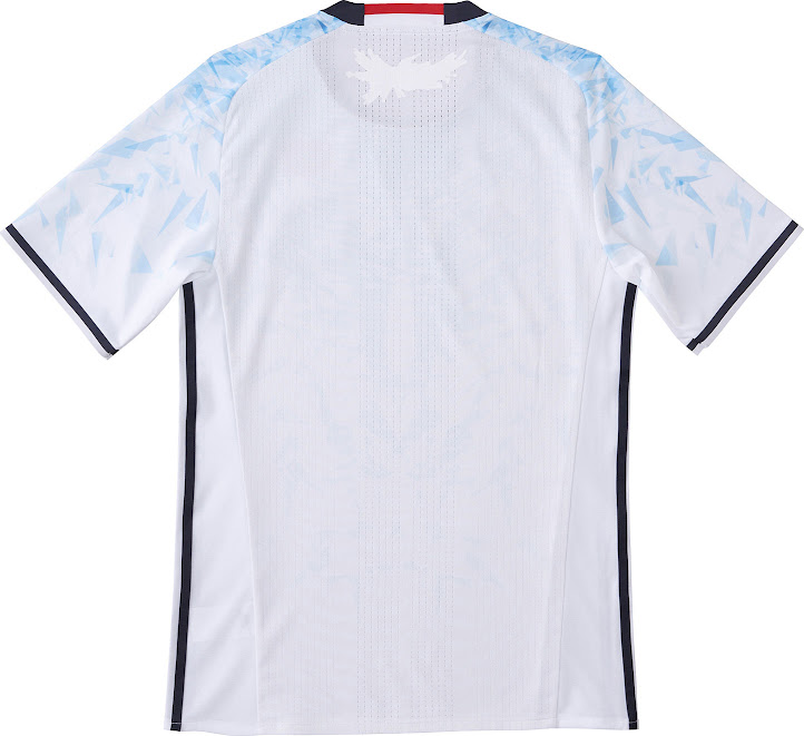 Das neue Japan 2016 Trikot, das eisblaue, zersplitterte Diamanten auf einem weißen Hintergrund zeigt, führt ein spektakuläres Design ein. Das neue Japan Trikot, das von Spielern wie Shinji Kagawa, Gōtoku Sakai und Hiroshi Kiyotake enthüllt wurde, wird in Kürze debütiert - wahrscheinlich nächste Woche im Auswärtsspiel gegen Kambodscha.
