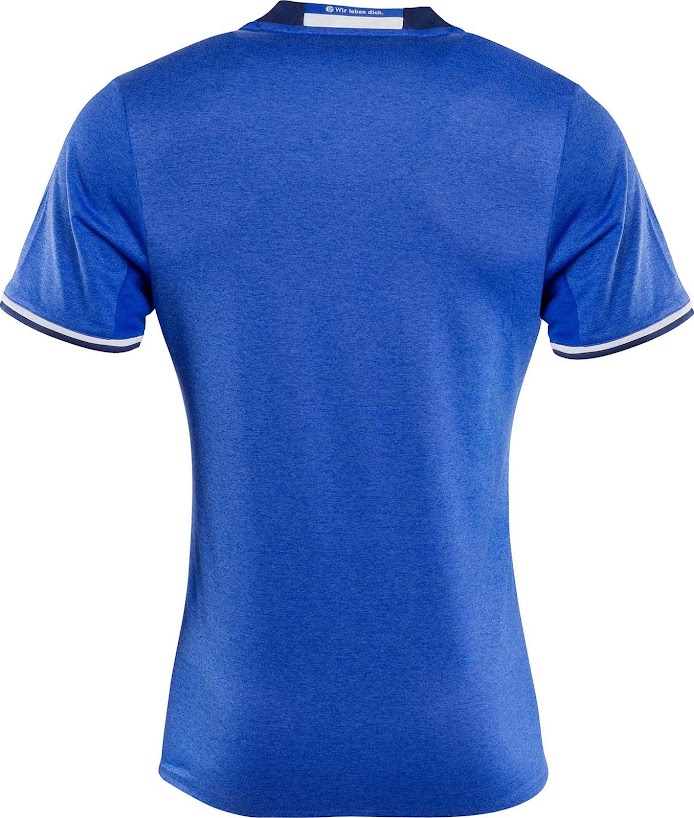 Das neue Schalke-Trikot, das von kultigen Schalke-Trikots der 1970er inspiriert wurde, ist hauptsächlich königsblau. Das neue Schalke 16-17 Trikot weist einen falschen Polokragen auf - wie das Kolumbien 2016 Trikot. Es ist hauptsächlich dunkelblau, während sich im Inneren des Kragens ein weiß-blaues Detail befindet, auf dem ein "Wir leben dich"-Schriftzug steht.