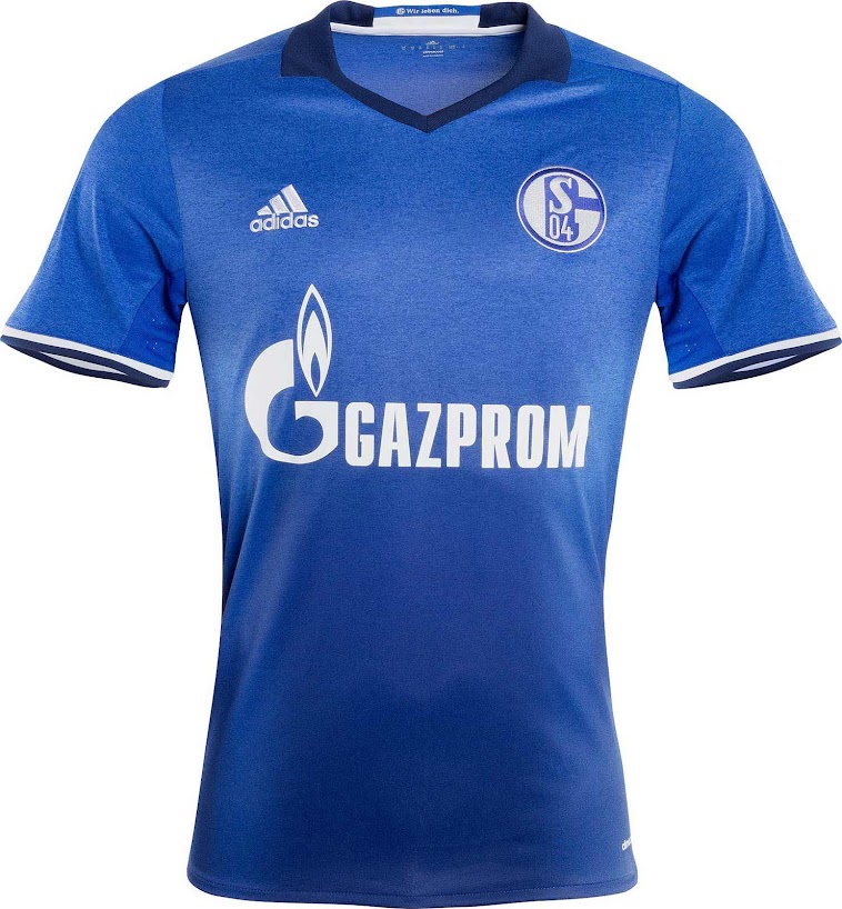 Ansonsten ist das Schalke 2016-17 Trikot sehr simpel und sauber gehalten. Die Adidas-Performance-, Schalke- und Gazprom-Logos sind auf der Vorderseite des neuen Schalke-Trikots in Weiß sichtbar.