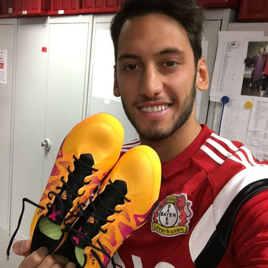 Bayer-04-Leverkusen-Mittelfeldspieler Hakan Calhanoglu hat seine gelben Adidas X 15.1 Schuhe vor einer Woche auf Instagram präsentiert. Und während es in der Regel nichts Besonderes ist, wenn ein Spieler ein Bild seiner brandneuen Fußballschuhe postet, erlangten die Schuhe, die Hakan Çalhanoglu von Adidas erhalten hat, zu Recht die Aufmerksamkeit unseres begierigen Lesers @tyleryoung011, da sie anders als jeder Adidas X 15.1 Fußballschuh sind.