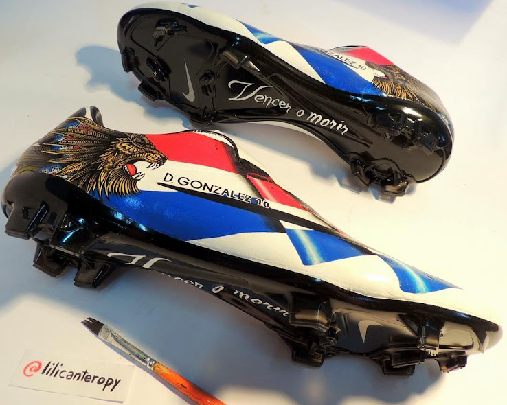 Die Nike Mercurial Vapor X Fußballschuhe, die vergangene Woche von Paraguays Derlis González im WM-2018-Qualifikationsspiel gegen Brasilien debütiert wurden, wurden per Hand von Cantero bearbeitet, die eine umwerfende Grafik hinzugefügt hat, deren Inspiration Paraguay gewesen ist. Die Grafik weist die paraguayische Flagge auf, sowie "unsere Kultur und unsere Stärke". Derlis González Name und Trikotnummer stehen auf der Außenseite.