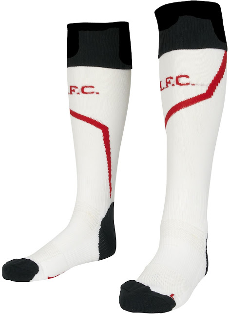 Die neue Hose des Liverpool 2013-14 Auswärtstrikots ist Schwarz mit roten Applikationen und einem ähnlichem Design. Die Liverpool 2013-14 Auswärtstrikotstutzen sind weiß mit roten Warrior Logos und einem schwarzen Teil.