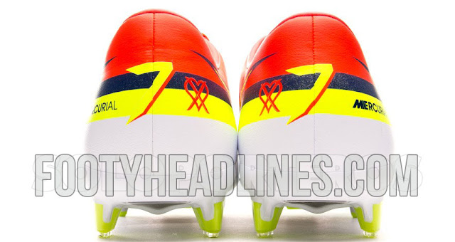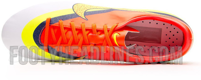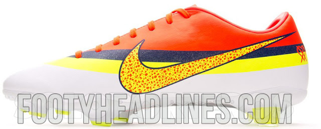 Heute erreichen uns die ersten hochauflösenden Bilder des neuen Nike Mercurial Vapor Veloce 9 Cristiano Ronaldo 2013 Fußballschuhs in den Farben White/Total Crimson/Volt. Die Bilder (von Footy Headlines) zeigen den neuen Cristiano Ronaldo 2013 Mercurial Vapor IX Fussballschuh, der Anfang April offiziell vorgestellt wird. Die Hauptfarbe des zweiten für Cristiano Ronaldos entworfenen Nike Mercurial Vapor IX CR 7 Schuhs ist weiß, mit einem einzigartigen Design in den Farben Orange, Blau und Gelb. Cristiano Ronaldo wird wahrscheinlich im UEFA Champions League Spiel gegen Galatasaray am 3.April in seinen neuen Nike Mercurial Vapor IX Fußballschuhen debutieren.