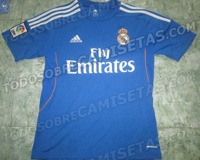 Nach dem Real Madrid 13-14 Heimtrikot und dem orangenen Real CL Trikot präsentieren wir heute das neue Real Madrid 2013-2014 Adidas Auswärtstrikot. Die Hauptfarbe des neuen Real 13/14 Auswärtstrikots ist blau mit weißen adidas Streifen und einer orangenen, seitlichen Naht. Das neue Real Madrid 2013/14 Auswärtstrikot wird offiziell im Mai 2013 vorgestellt.