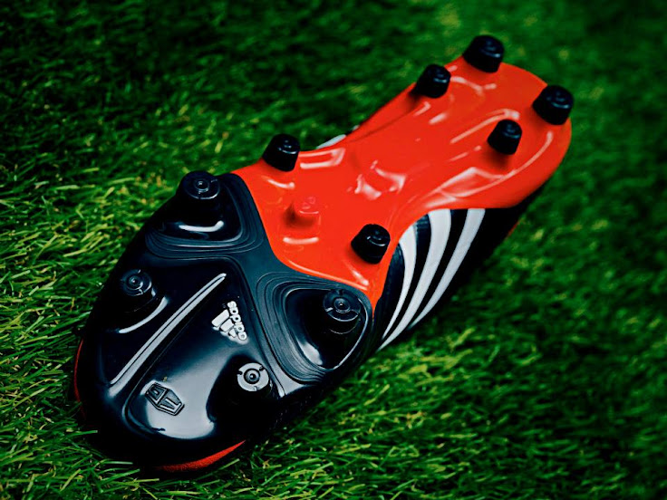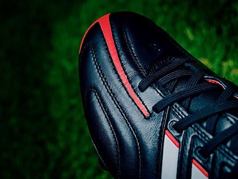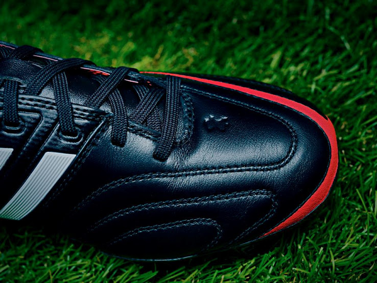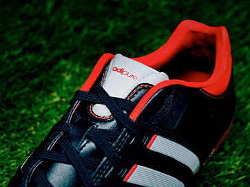 Die neue Adidas Adipure Farbvariante kommt wieder mit der Grundfarbe Schwarz mit einigen roten Applikationen und weißen Adidas Streifen. Die Sohle der neuen Adidas Adipure Schuhe ist in einen roten und einem schwarzen Teil aufgeteilt.