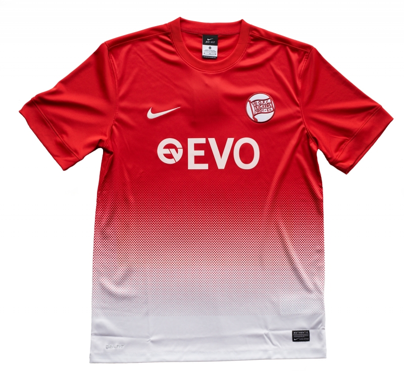 Das neue Offenbach 2013-14 Heimtrikot mit einem weiß-rotem Farbüberlauf.
