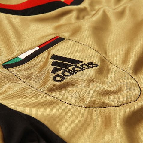 Das AC Mailand 2013-14 Ausweichtrikot ist golden mit schwarzen Hosen und schwarz / rot gestreiften Stutzen. Ähnlich wie bei den beiden lezten Ausweichtrikot des AC Mailands gibt es auch beim 13-14 Dritten Trikot eine Brusttasche. In der Mitte dieser Brusttasche ist das adidas-Logo platziert, während sich darüber eine italienische Flagge befindet. Die obere Hälfte des Kragens des Milan 13-14 Ausweichtrikots ist schwarz während die untere rot ist. Auf der Hose des AC Mailand 13-14 Dritten Trikots ist ebenfalls die italienische Flagge zu sehen, während vorne auf den schwarz-rot-gestreiften Stutzen in Erinnerung and die Gründung des Vereins die Zahl 1899 zu sehen ist.