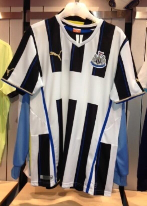 Das neue Newcastle United 13-14 Heimtrikot basiert auf dem neuen Puma King 13-14 Template, das unter anderem auch für Dortmunds und Feyenoords 13-14 Trikots verwendet wird. Das neue Newcastle United 13-14 Heimtrikot hat wie üblich weiße und schwarze Streifen, während eine blaue Linie an der Seite des Trikots an beiden Armen verläuft. Der Kragen ist mit seinem weißem V-Kragen und dem schwarzen runden Kragen inneinander etwas speziell.