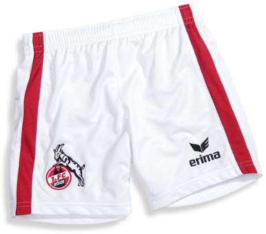 Die Hose des neuen FC Köln 13-14 Heimtrikots ist hauptsächlich Weiß mit einem roten vertikalen Streifen auf beiden Seite der Hose.