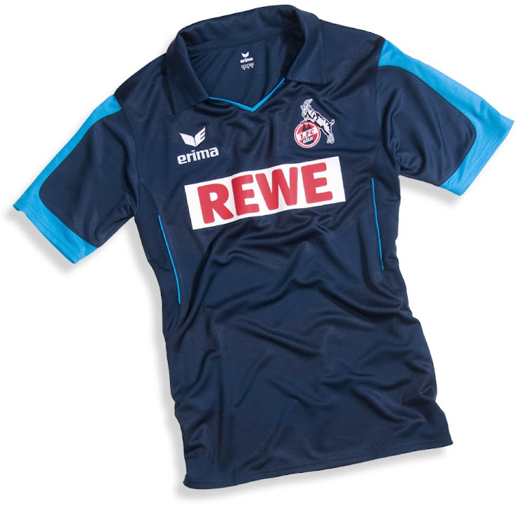 Das neue Köln 13-14 Ausweichtrikot ist dunkelblau mit hellblauen Details.