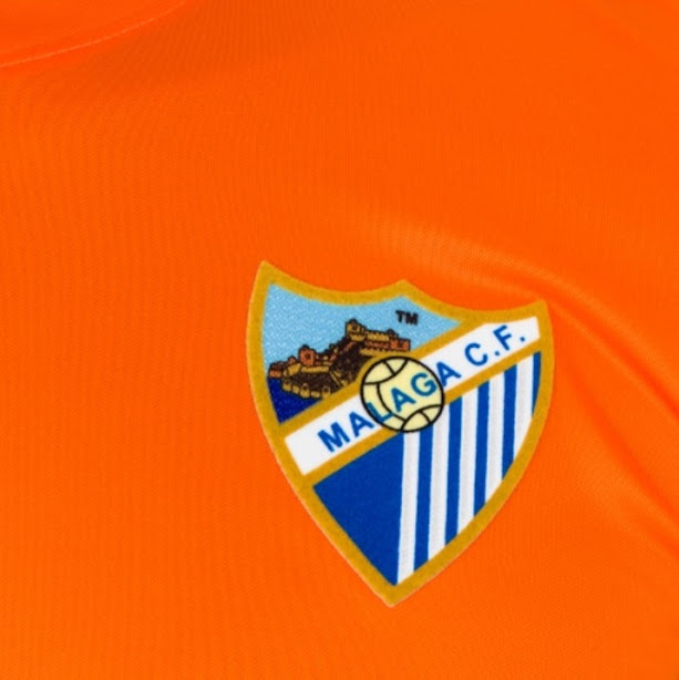 Das Málaga 2013-14 Ausweichtrikot basiert auf dem Nike Trophy Trikottemplate und kommt in orange mit weißen und schwarzen Details auf den Ärmeln.