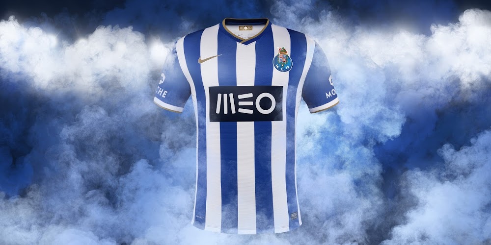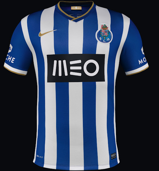 Das neue Porto 2013-14 Heimtrikot ist blau/weiß gestreift und hat goldene Akzente um den 120sten Geburtstag des Klubs zu feiern.