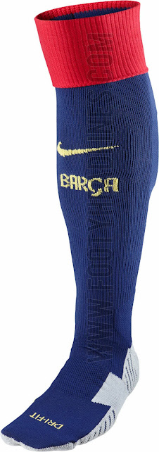 Die Hosen und Stutzen des neuen Barcelona 2014-15 Ausweichtrikots weisen das selbe Design auf, ähnlich wie beim Manchester United 14-15 Ausweichtrikot.