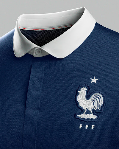 Das spezielle Material wurde von der Story aus Nîmes inspririert, dem Geburtsort des modernen Denim Styles. Das Wappen des neuen Frankreich 2014 WM Trikots wurde von ihrem Wappen aus dem Jahr 1958 inspiriert.