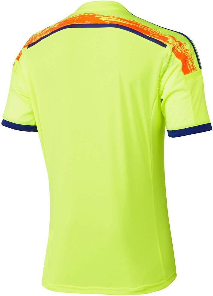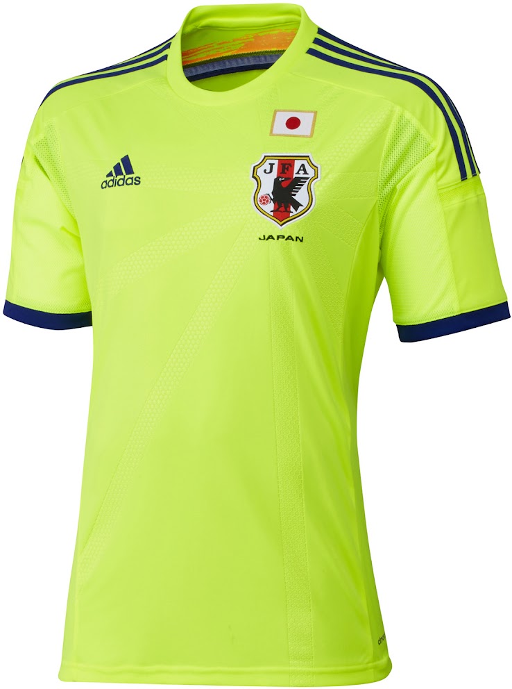 Im Gegensatz zu den weißen Japan Auswärtstrikots ist das neue Japan 2014 Auswärtstrikot gelb. Die neue Farbe soll der neuen Generation Japans Tribut zollen. Das neue Japan 2014 WM Auswärtstrikot kommt mit blauen und pinken Applikationen.