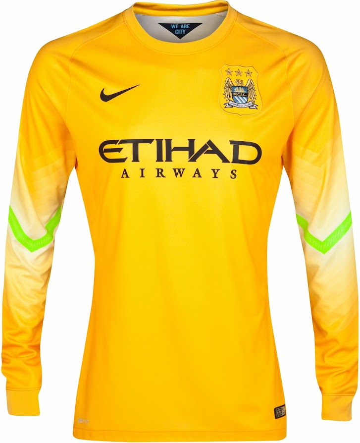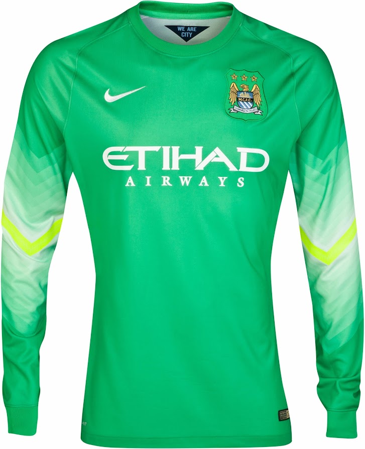 Basierend auf dem selben Template wie die England 2014 WM Torwart Trikots, sind die neuen Machester City 14-15 Torwart Trikots grün / weiß / gelb und gelb / schwarz.