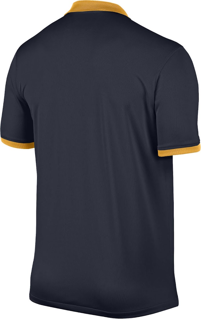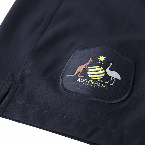 Das Nike Australien 2014 WM Auswärtstrikot weist das selbe Template auf wie das Heimtrikot auf, nur in anderen Farben. Das Trikot ist hauptsächlich dunkelblau mit gelben Applikationen und Designelementen.
