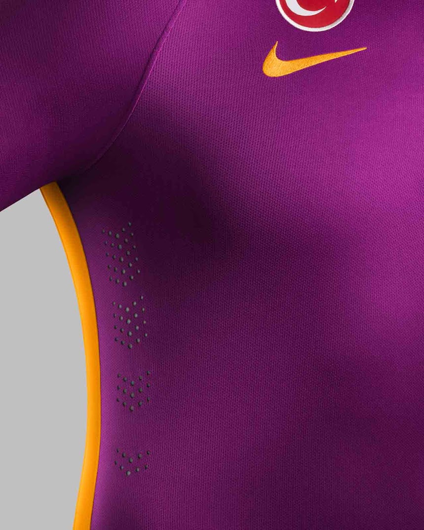 Ähnlich wie andere Nike 14-15 Third Trikots, ist auch dieses Trikot sehr grell mit einem klassischen Polo Kragen. Die Hosen und Stutzen des neuen lilanen Galatasaray 14-15 Trikots sind ebenfalls lila.