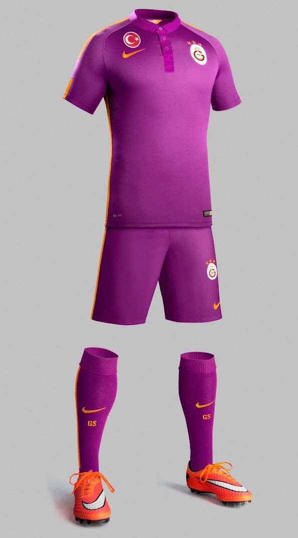 Ähnlich wie andere Nike 14-15 Third Trikots, ist auch dieses Trikot sehr grell mit einem klassischen Polo Kragen. Die Hosen und Stutzen des neuen lilanen Galatasaray 14-15 Trikots sind ebenfalls lila.