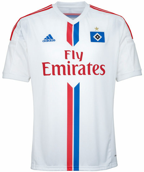 Das neue Hamburger SV 14-15 Heimtrikot ist hauptsächlich weiß mit roten Adidas Streifen, während das Adidas Logo blau ist. Auf der Vorderseite des Trikots ist ein blauer und ein roter vertikaler Streifen mit dem Fly Emirates Logo, platziert im Freiraum der Streifen. Es ist das erste Trikot in der Geschichte des Vereins, das dieses einzigartige Design aufweist.