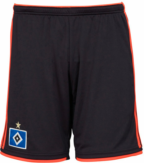 Das neue HSV 14-15 Auswärtstrikot ist hauptsächlich schwarz mit roten Adidas Streifen und horizontalen Linien, die das Diamantendesign des Wappens kreiren. Das neue Hamburg 14-15 Auswärtstrikot kommt mit einem simplen Rundkragen, während die Ärmelenden ebenfalls orange sind.