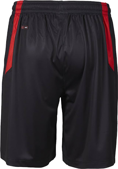 Die Hosen und Stutzen des neuen Liverpool 14-15 Ausweichtrikots sind schwarz mit roten Details.