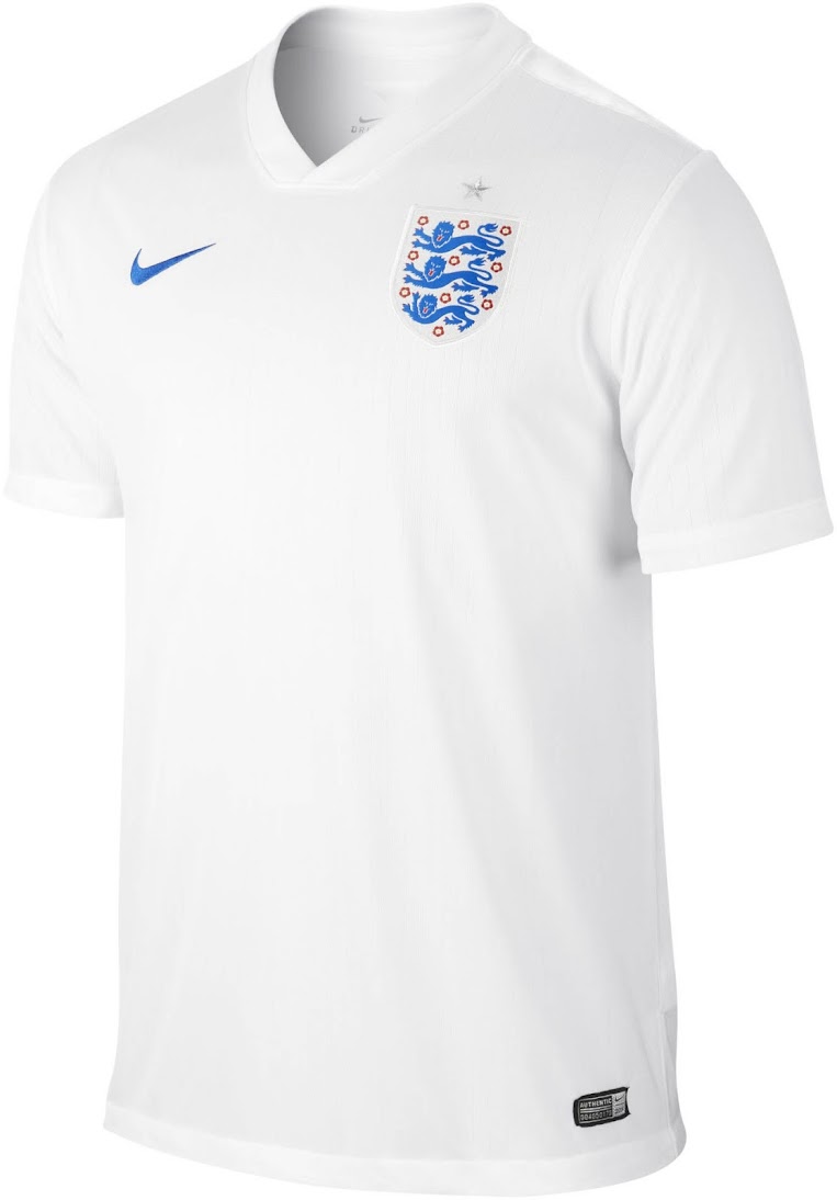 Das neue England 2014 WM Heimtrikot ist hauptsächlich weiß, während ein blauer Farbton, Sport Royal genannt, für die Details verwendet wird. Das neue England 2014 Brasilien Trikot kommt ohne das spezielle 150-Jahre Wappen, das für das letzte Heimtrikot verwendet wurde.