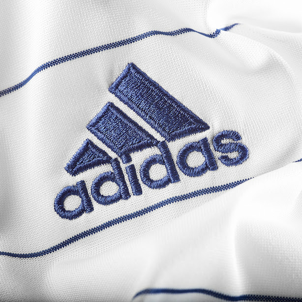 Das neue Lyon 14-15 Trikot ist weiß mit blauen horizontalen Nadelstreifen auf der Vorderseite, die die Dynamik des Klubs symbolisieren. Wie alle Adidas Trikots der neuen Saison kommt das neue Lyon 2014-15 Trikot mit einem roten horizontalen Streifen auf der Rückseite, während das Adidas Logo und die berühmten drei Streifen rot sind.