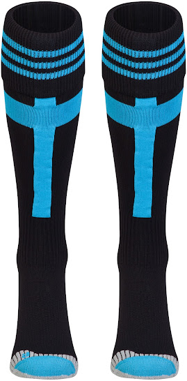 Die Hose und Stutzen des neuen Marseille 14-15 Heimtrikots sind weiß / blau.