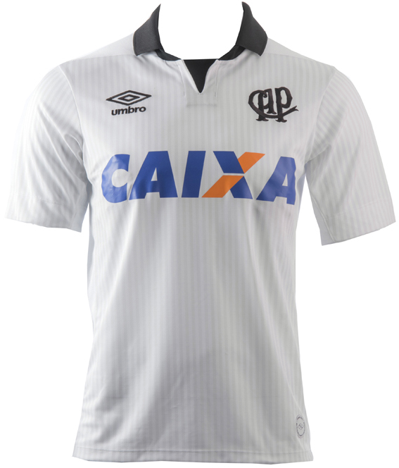 Das Atlético Paranaense 2014 Auswärtstrikot ist größtenteils weiß mit hellgrauen vertikalen Streifen. Das Trikot weist gegensätzliche schwarze Details auf, einen schwarzen Kragen und schwarze Logos. Der Verein entschied sich für den Gebrauch des alten CAP Wappens.