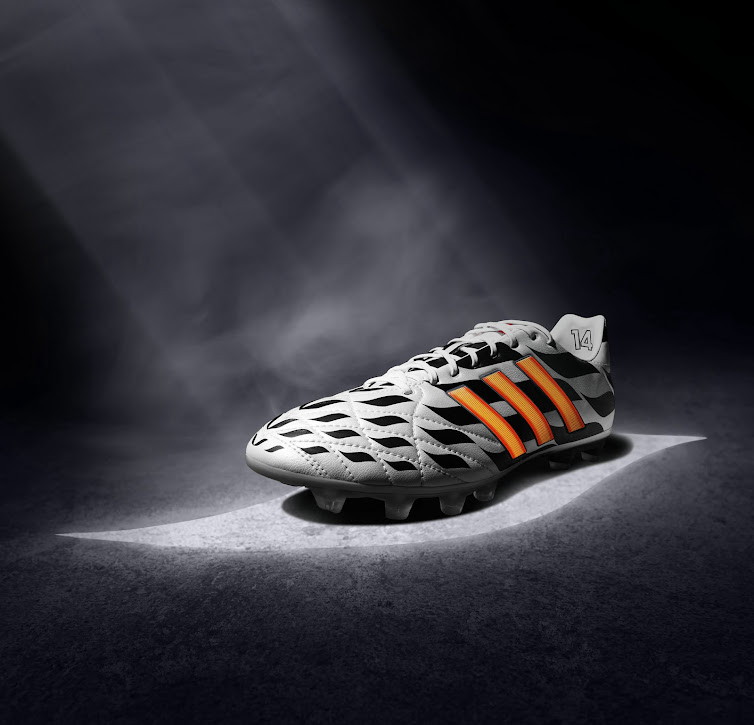 Sowohl der neue Adidas Nitrocharge WM 2014 Schuh als auch der Adidas Adipure WM 2014 Schuh basieren auf den aktuellen Schuhmodellen. Jeder Schuh der Adidas WM 2014 Fussballschuhe kommt mit einem einzigartigen Design, das auch die Eigenschaften des jeweiligem Modells widerspiegeln soll (Geschwindigkeit, Kontrolle, Energie und Komfort).
