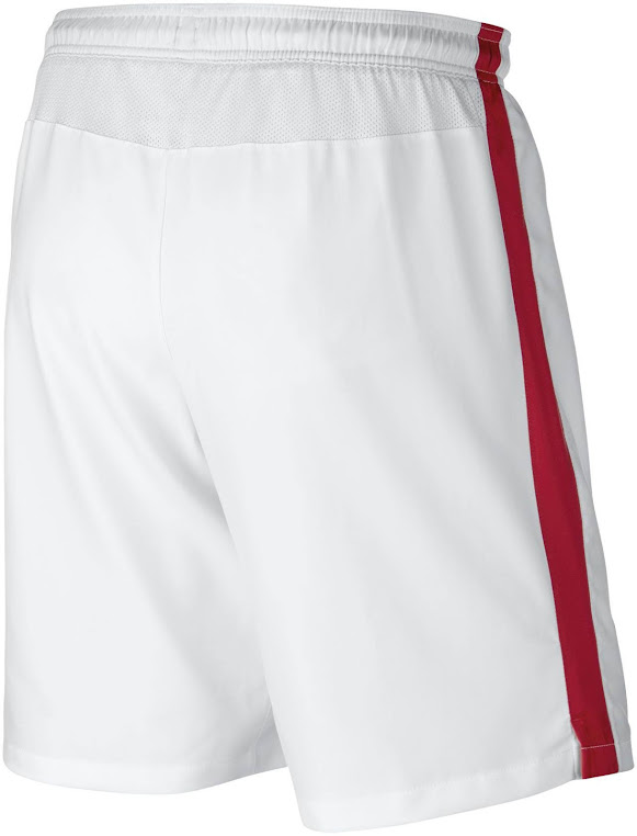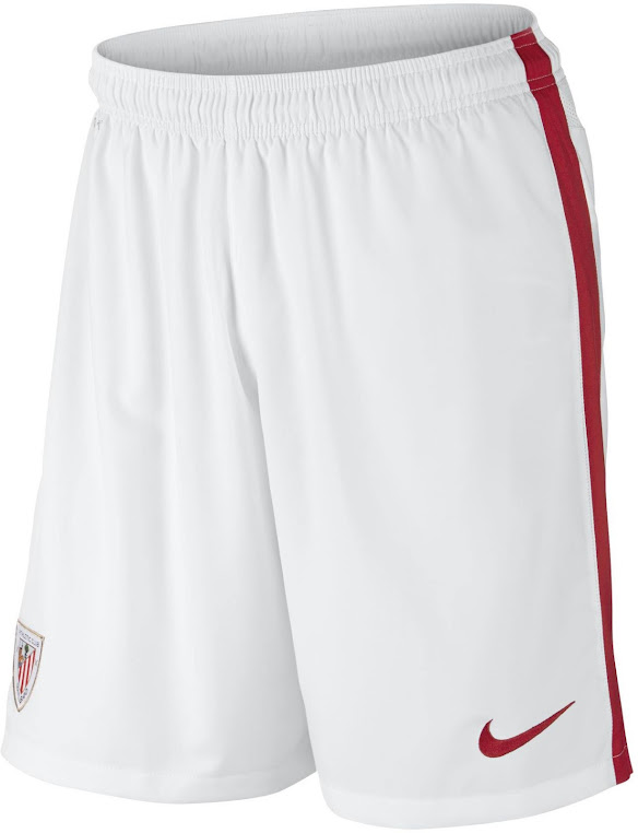 Die Hose des neuen Athletic Bilbao 14-15 Auswärtstrikots ist weiß mit einem roten Streifen auf jeder Seite, während die Athletic Club Stutzen rot sind.