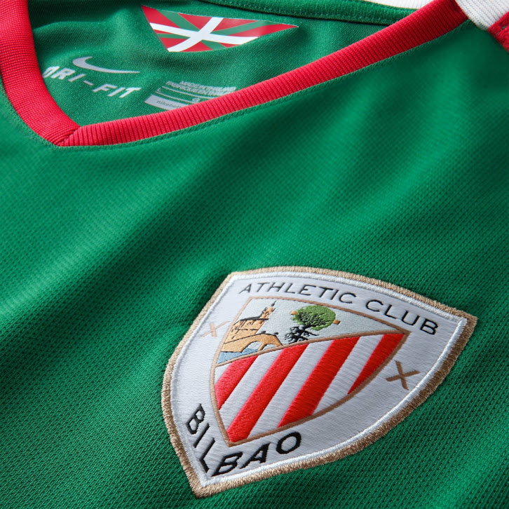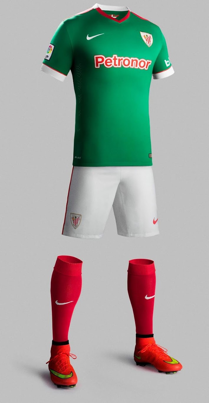 Das Athletic Club 2014-15 Auswärtstrikot ist überwiegend grün und weist einen ähnlichen Kragen wie das Brasilien 2008 Trikot auf. Das Bilbao 14-15 Trikot hat weiße-rote Ärmelenden und auch einen roten Bereich neben dem Kragen. Innerhalb des Kragens ist eine Grafik der baskischen Flagge.