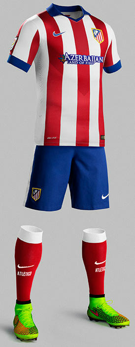 Atlético unterzeichnete den Aserbaidschan Trikotdeal, der Berichten zufolge 20 Millionen Euro wert ist, im Januar 2013. Die Laufzeit des Vertrags lag bei 18 Monaten und wäre im Juni 2014 ausgelaufen, aber der Vertrag wurde für eine weitere Saison verlängert. Das neue Atlético Madrid 2014-2015 Heimtrikot wird wieder von Nike hergestellt und weist ein klassisches Design auf.