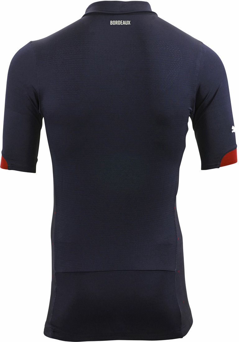Basierend auf dem selben Template wie das Italien 2014 WM Auswärtstrikot, kommt das neue Bordeaux 14-15 Heimtrikot mit einem sehr ähnlichen, klassischen Polo Trikotkragen. Die Hose und Stutzen des neuen Bordeaux 2014-2015 Heimtrikots sind dunkelblau / weiß / rot.