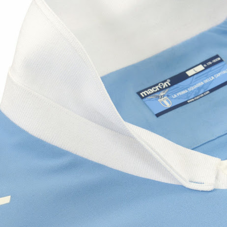 Der Schriftzug S.S. Lazio 1900 ist unterhalb des Trikotkragens platziert, während innerhalb des Kragens der Schriftzug "La Prima Squadra Della Capitale" (Der erste Klub der Hauptstadt) steht.