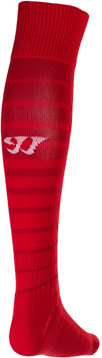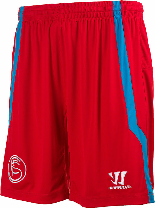 Die Hose und die Stutzen des neuen Sevilla 14-15 Torwart Heimtrikots sind auch rot mit hellblauen Elementen.