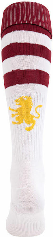 Die neue Aston Villa 14-15 Auswärtstrikot Hose ist weinrot / weiß, mit weinrot / weiß gestreiften Stutzen. Der gelbe Löwe des Aston Villa Wappens ist auf der Rückseite der Aston Villa 2014-2015 Trikot Stutzen platziert.