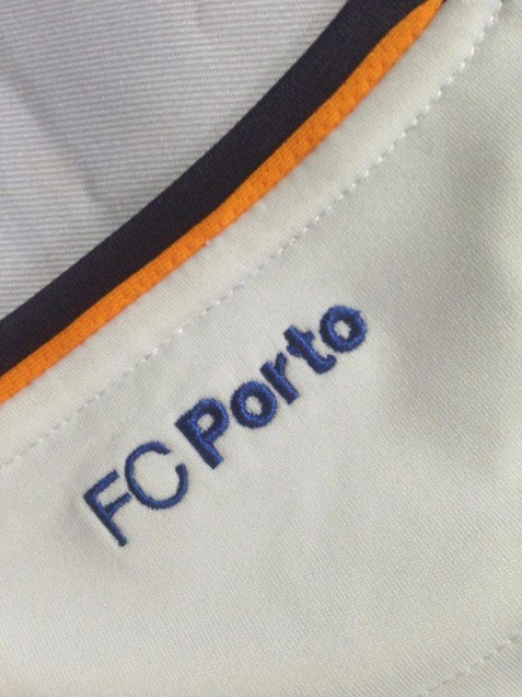 Der Schriftzug FC Porto ist auf der Rückseite unterhalb des Kragens des neuen Porto 14-15 Heimtrikots platziert, während die Ärmel keine Streifen aufweisen und größtenteils weiß mit blauen Akzenten sind. Das Porto 2014-2015 Heimtrikot hat einen einzigartigen schwarzen Kragen und blaue Ärmelenden.