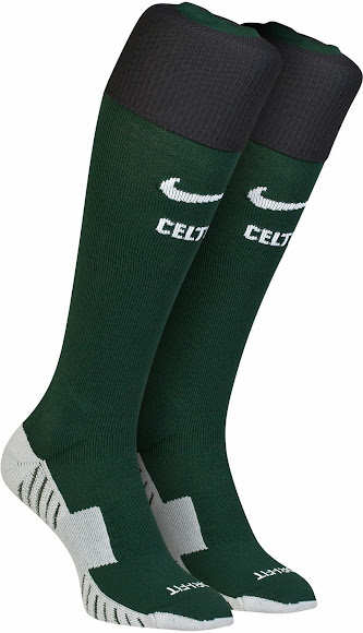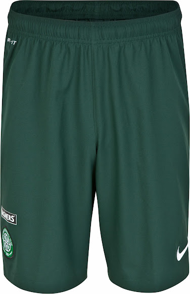 Die Hose und Stutzen des neuen Celtic 14-15 Auswärtstrikots sind dunkelgrün mit Schwarz als Zweitfarbe.