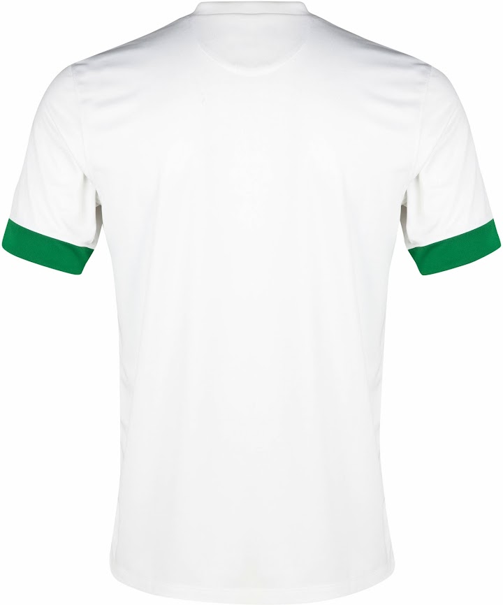 Das hauptsächlich weiße Celtic FC 2014-2015 Ausweichtrikot weist einen goldenen Bruststreifen mit zwei schmalen grünen Streifen auf. Grüne Ärmelenden und ein spezieller weißer Kragen, der auch für die neuen Nike Eintracht Frankfurt 14-15 Trikots verwendet wird, vollenden das einzigartige Celtic 2014-15 Ausweichtrikot.
