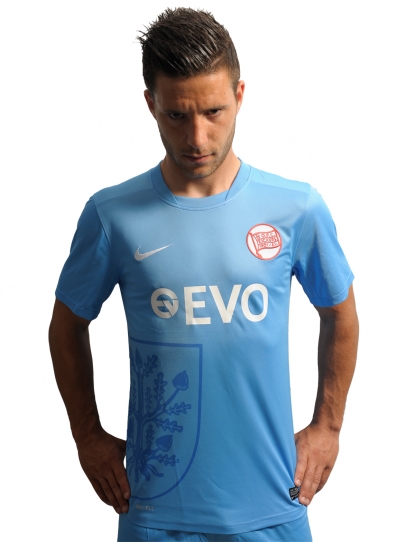 Giuliano Modica, Spieler von Kickers Offenbach: "Die Trikots spiegeln unseren Club Kickers Offenbach gut wieder. Sie stehen für die Leidenschaft der Fans, den Kampf im Spiel und die Tradition des Vereins."