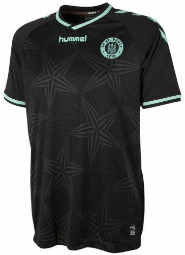 Das neue St. Pauli 14-15 Ausweichtrikot, das als ein spezielles Trikot DFB Pokal verwendet wird, ist hauptsächlich schwarz mit türkis als Zweitfarbe. Das Hummel St. Pauli 2014-15 Pokal Trikot hat einen schwarzen / hellblauen V-Kragen und auch ein farblich angepasstes St. Pauli Emblem. Das auffälligste Element des St. Pauli 14-15 Ausweichtrikots ist ein gänzlicher Druck von Sternen.