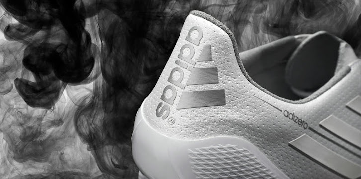 Das ist der neue, weiße Adidas Adizero Fußballschuh.