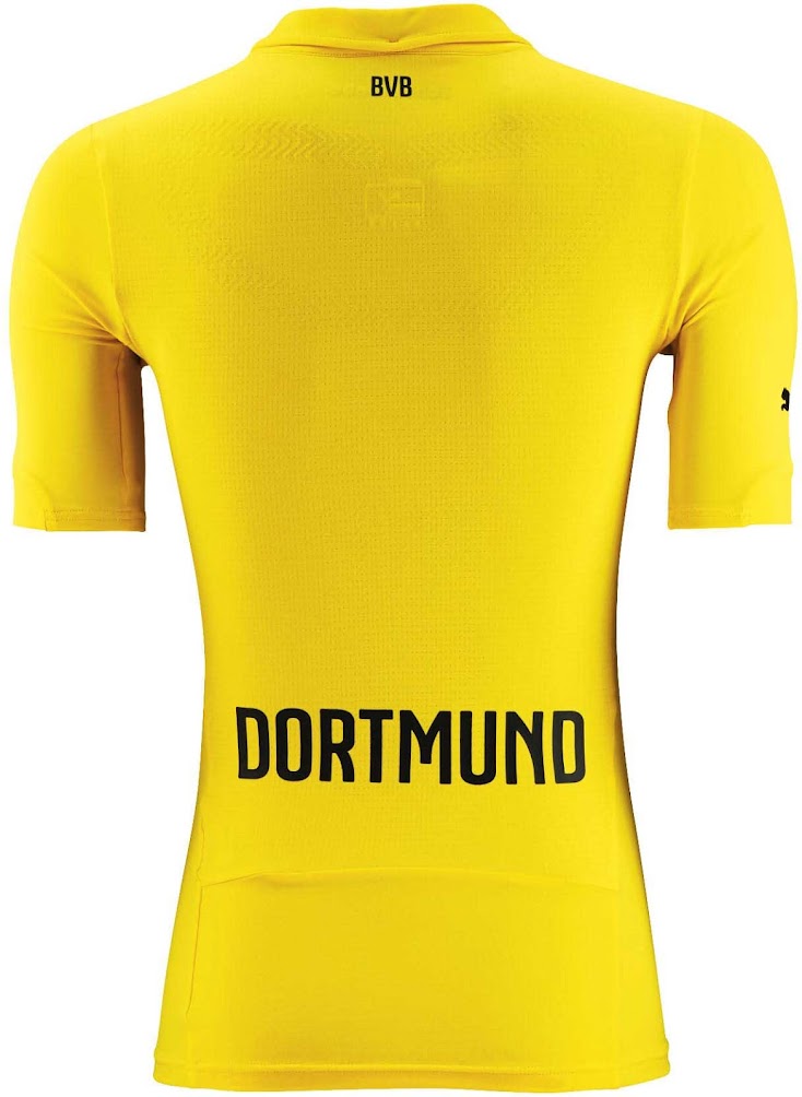 Das neue Borussia Dortmund 2014-15 Champions League Trikot hat einen sehr klassischen und simplen Look, vollendet mit einem klassischen Kragen wie der des Puma Italien 2014 Heimtrikots.